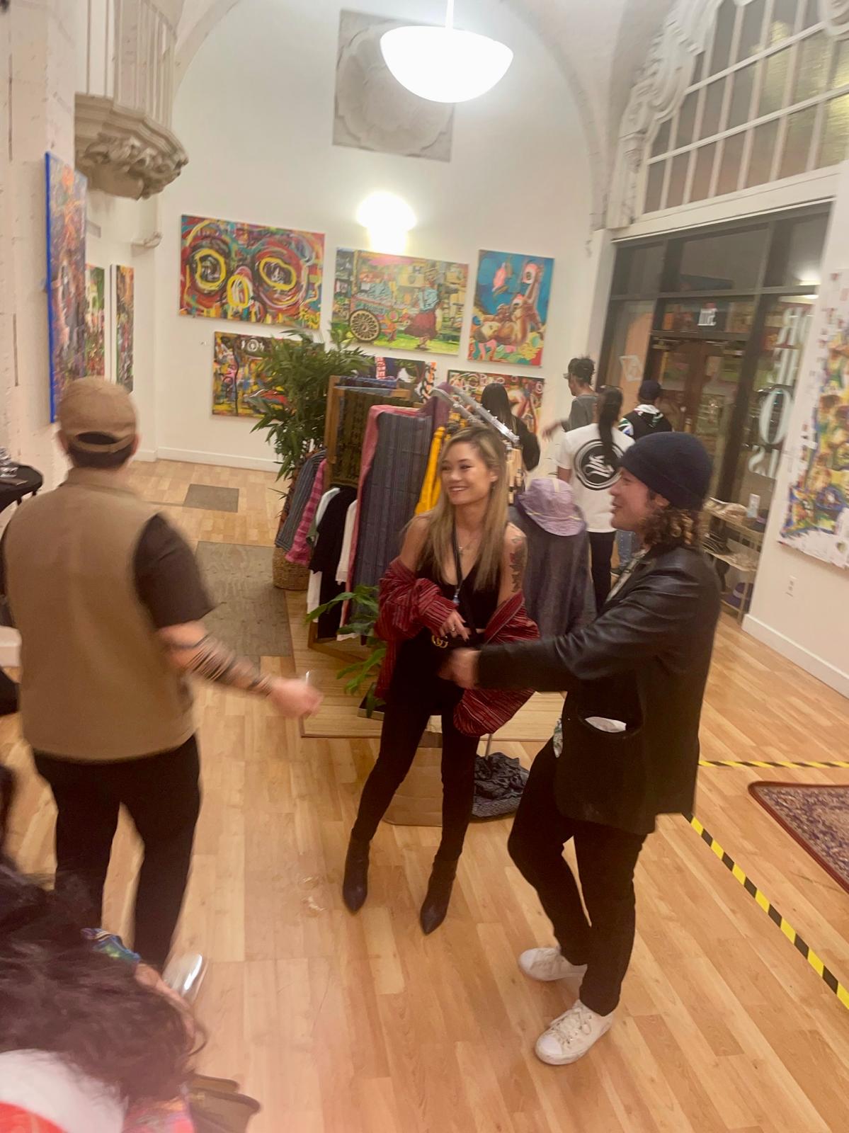 Inspired by their love for LA culture, RICH Tribe showcased their tribute collection to the late - LA Laker Legend, Kobe Bryant - called "Legends Never Die", and new Kimono Bombers made with handwoven fabric from Tribes of the Philippines. Beanz, local LA-native artist, showcased a collection of visuals interpretating the current state of the people, politics, and culture.